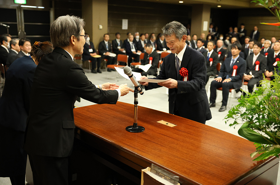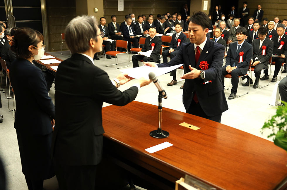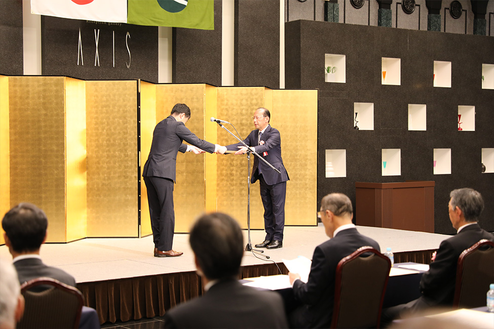 国土交通省北陸地方整備局 小俣篤様 より北陸地方整備局優良工事施工業者局長表彰をいただきました。