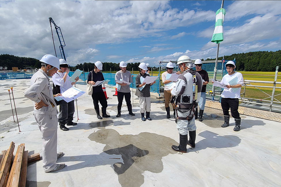 令和7年9月26日、新潟大学工学部工学科社会基盤工学プログラムの学生が当社の施工現場を見学に訪れました。