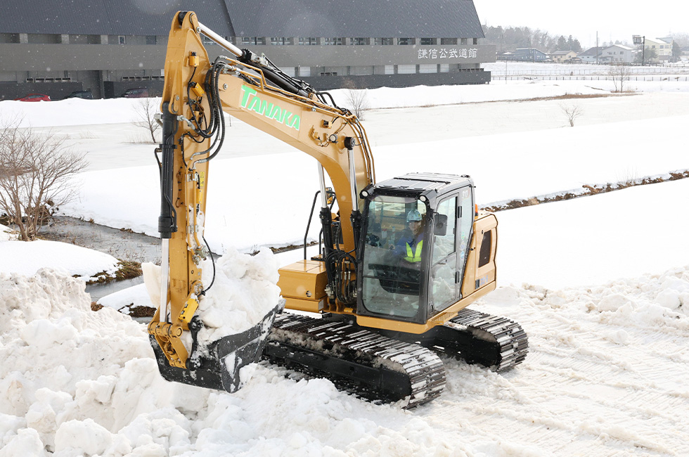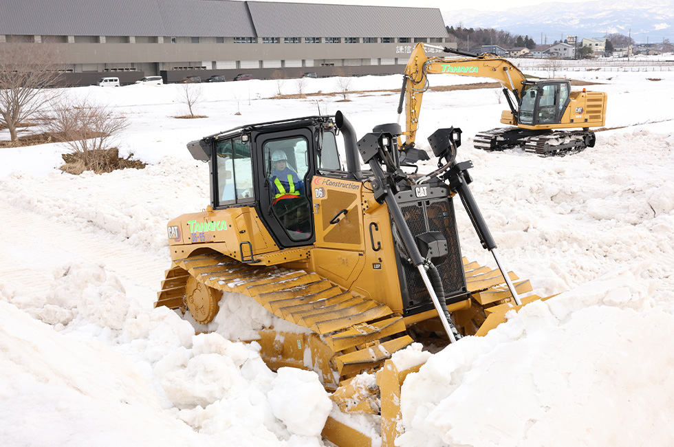 本年度に入社した田中産業初の女性オペレーターが除雪作業で活躍しています。